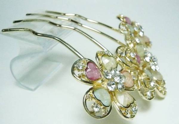 ラインストーン フラワー 夜会巻きコーム 4本足 マルチ