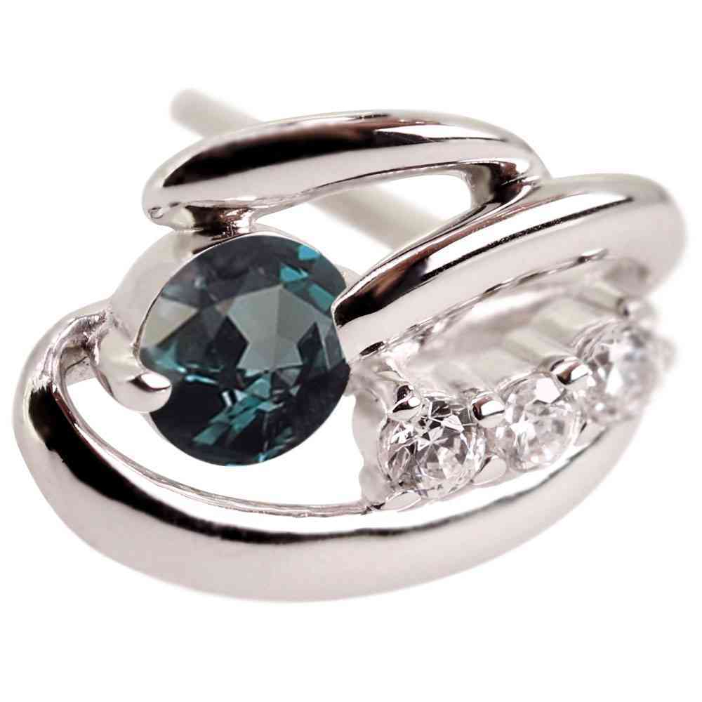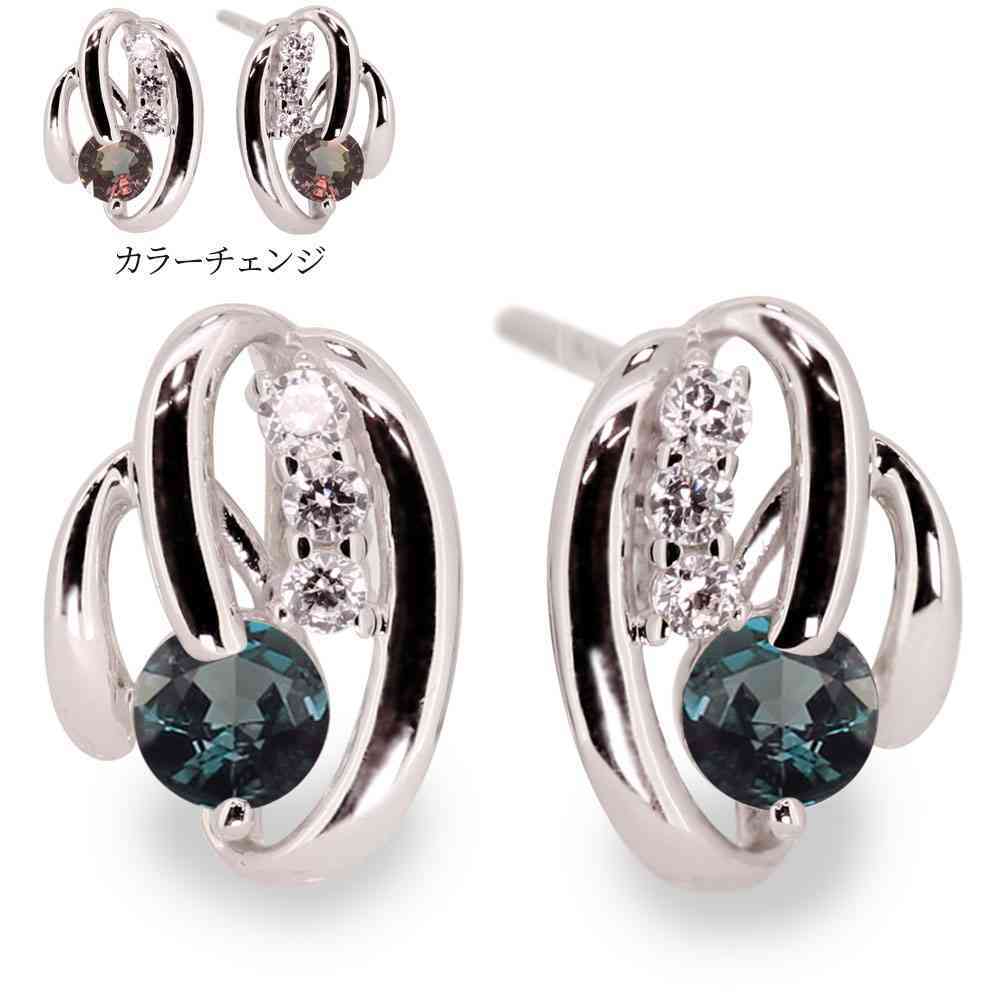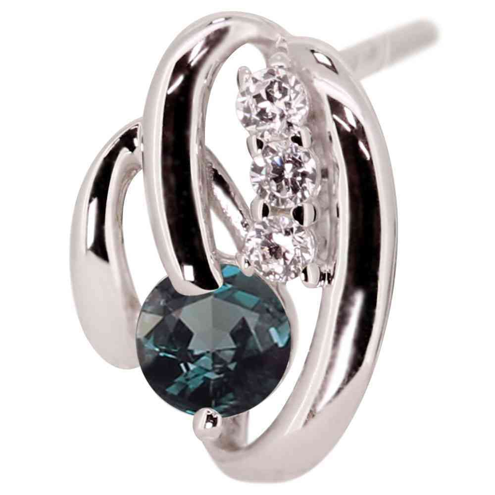 希少石アレキサンドライトを使用したプラチナ製の、レディーススタッドピアスです。