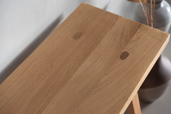 美しい木目を味わうことのできる座面は、傾斜のないフラットなデザインで座りやすい仕上げとなっており、オブジェやグリーンを置いてディスプレイ台として使用したり、玄関スペースにもぴったりのサイズです。