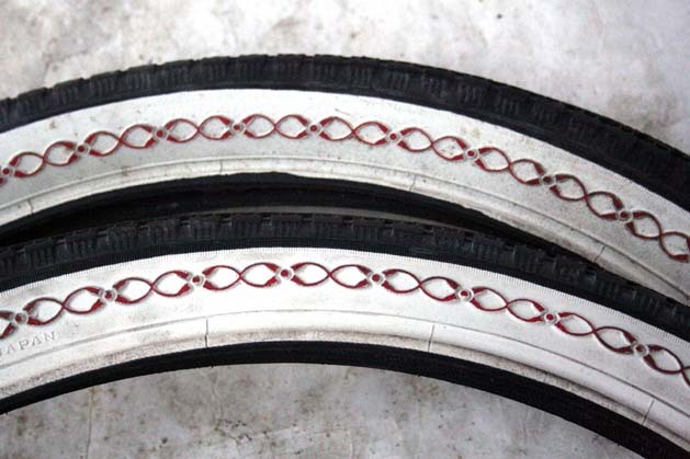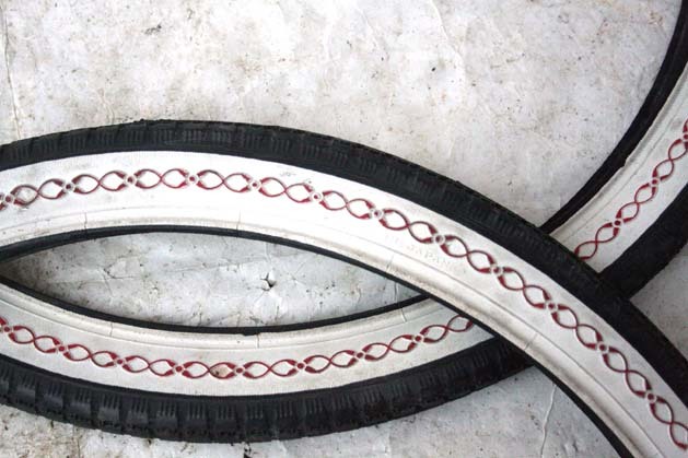 70sリボン柄新品自転車タイヤ2本 検丸石富士セキネ宮田山口光川村能率ヒヅル帝輪ダグラス水谷自転車デコチャリBMXモンテカルロ自転車バイク