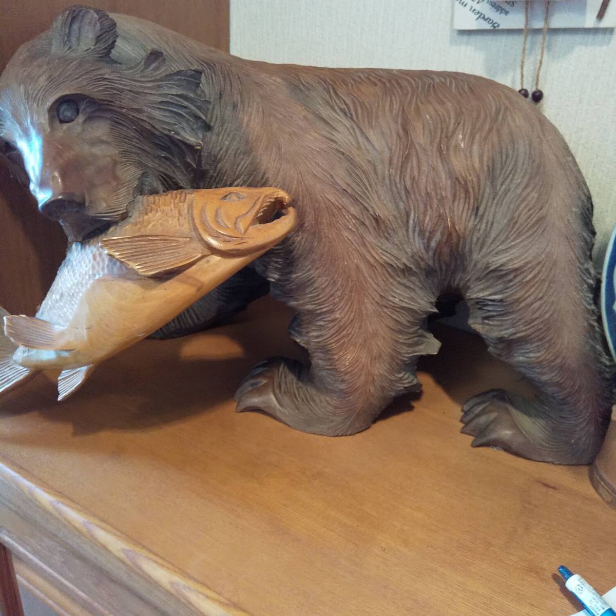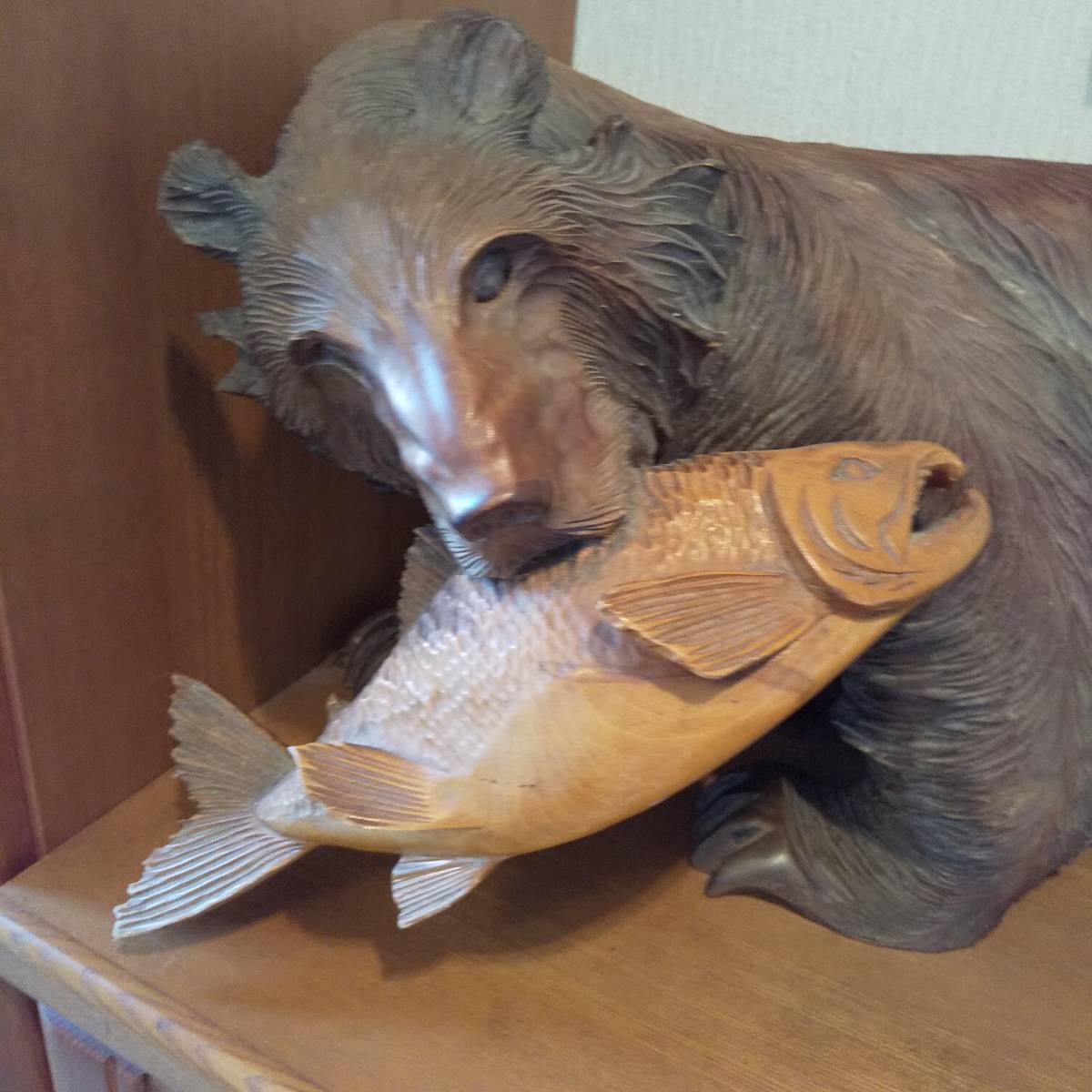 熊の大きさ 長さ・・・熊の耳→後足・・・約41cm  魚の尻尾→後足・・・約45cm 高さ・・・約24cm 幅・・・約29cmですが素人採寸につき多少の誤差あると思います。