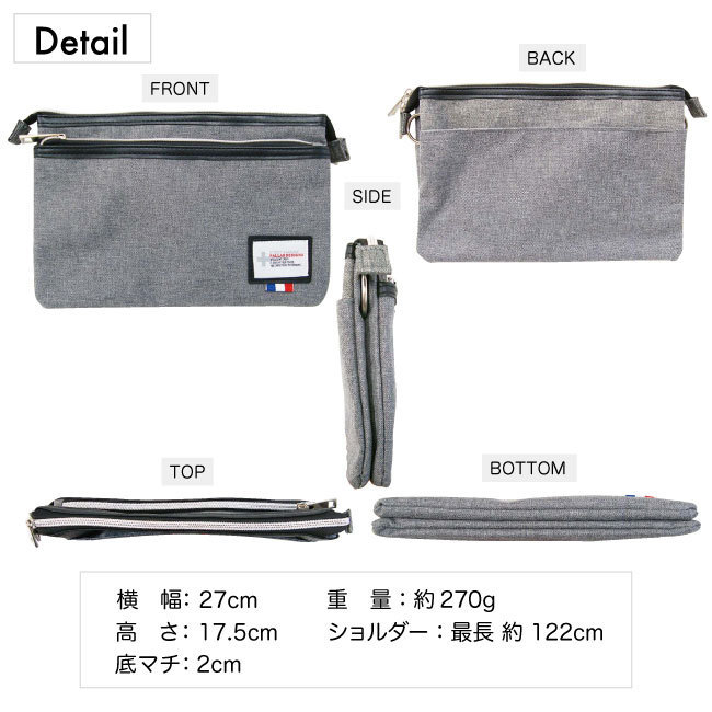 ◇メーカー・ブランド/PALLAS DESIGN ◇素 材/ポリエステルキャンバス ◇カラー/ブラック ◇サイズ(約)/幅27.5x高さ18xマチ2cm ◇重量(約)/250グラム ◇開閉方法/ダブルファスナー ◇ポケット/(外側)ファスナー1、マジックテープ1 (内側)ファスナー1、オープン2 ◇特 記/ショルダーは取り外し&長さ調節可能です。キーストラップ付属。 ◇状 態/新品 ◇備 考/色違いも出品中です。 ※画像の色合いは、出来るだけ実際の商品に近づけるよう努力しておりますが、お使いのモニター設定等により若干異なる場合がございますのでご了承ください。 |