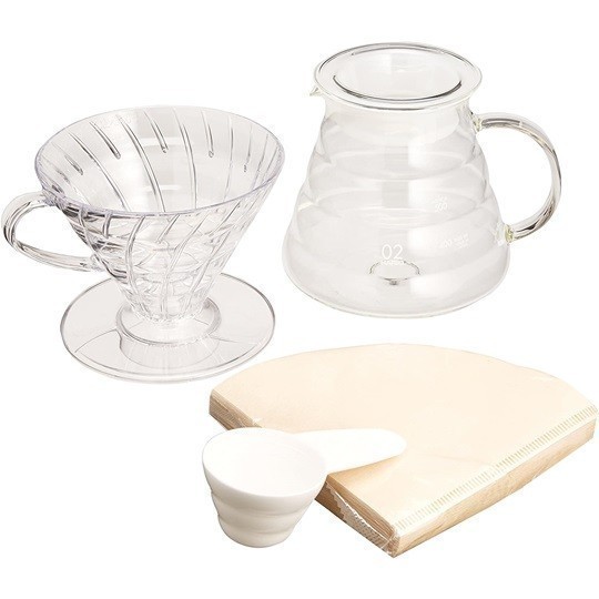 サーバー素材(ガラスボール):耐熱ガラス、サーバー素材(フタパッキン):シリコーンゴム、ドリッパー:AS樹脂、ペーパーフィルター:バージンパルプセット内容:ドリッパー02(1~4杯用)、メジャースプーン(ホワイト)、サーバー600(ホワイト)、ペーパーフィルター02M 40枚(1~4杯用)