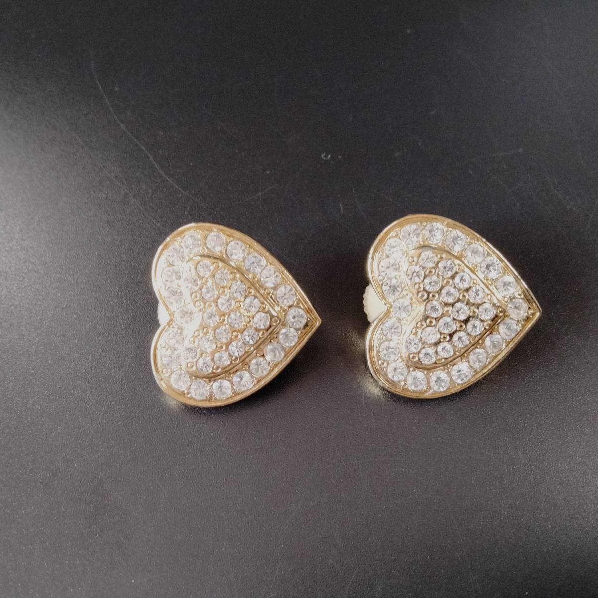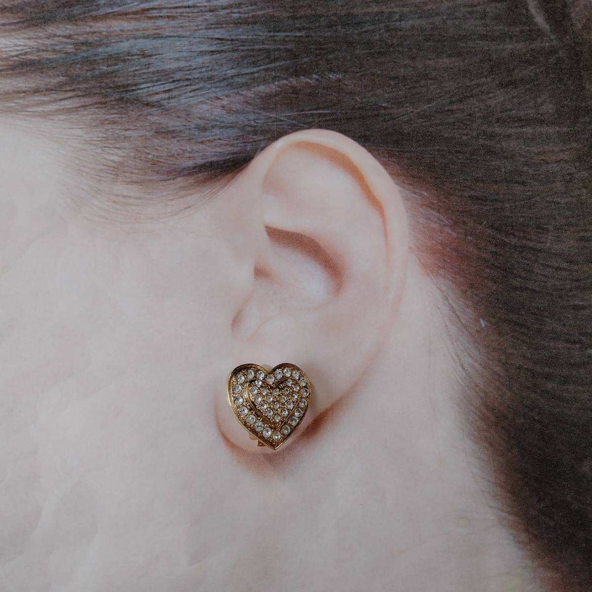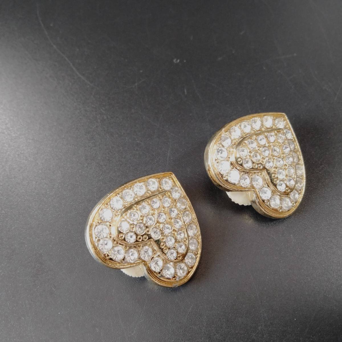 ビンテージ ピアス イヤリング ハート ラインストーン ゴールドトーン アールデコ 昭和レトロ コスチューム ジュエリー SDCC26