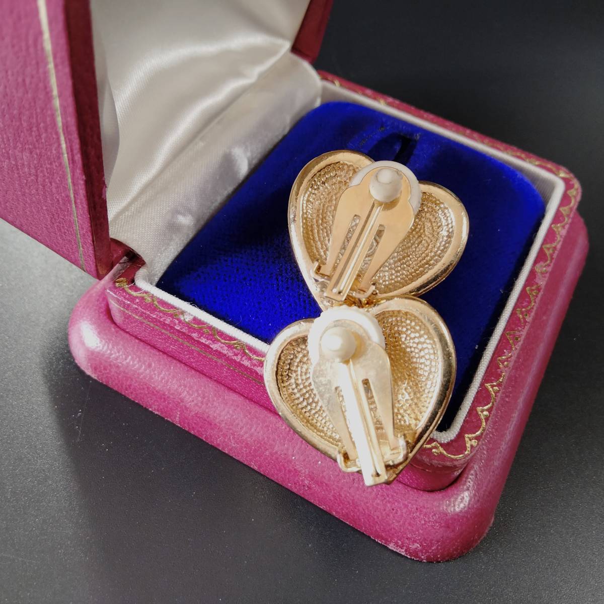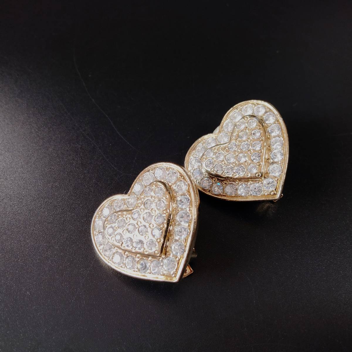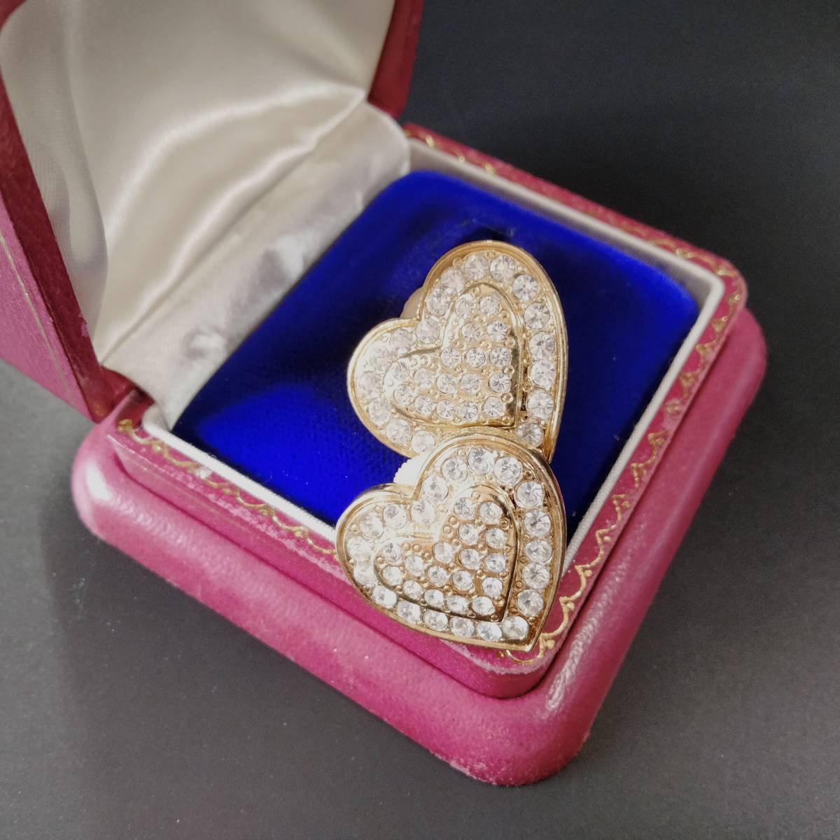 ビンテージ ピアス イヤリング ハート ラインストーン ゴールドトーン アールデコ 昭和レトロ コスチューム ジュエリー SDCC26