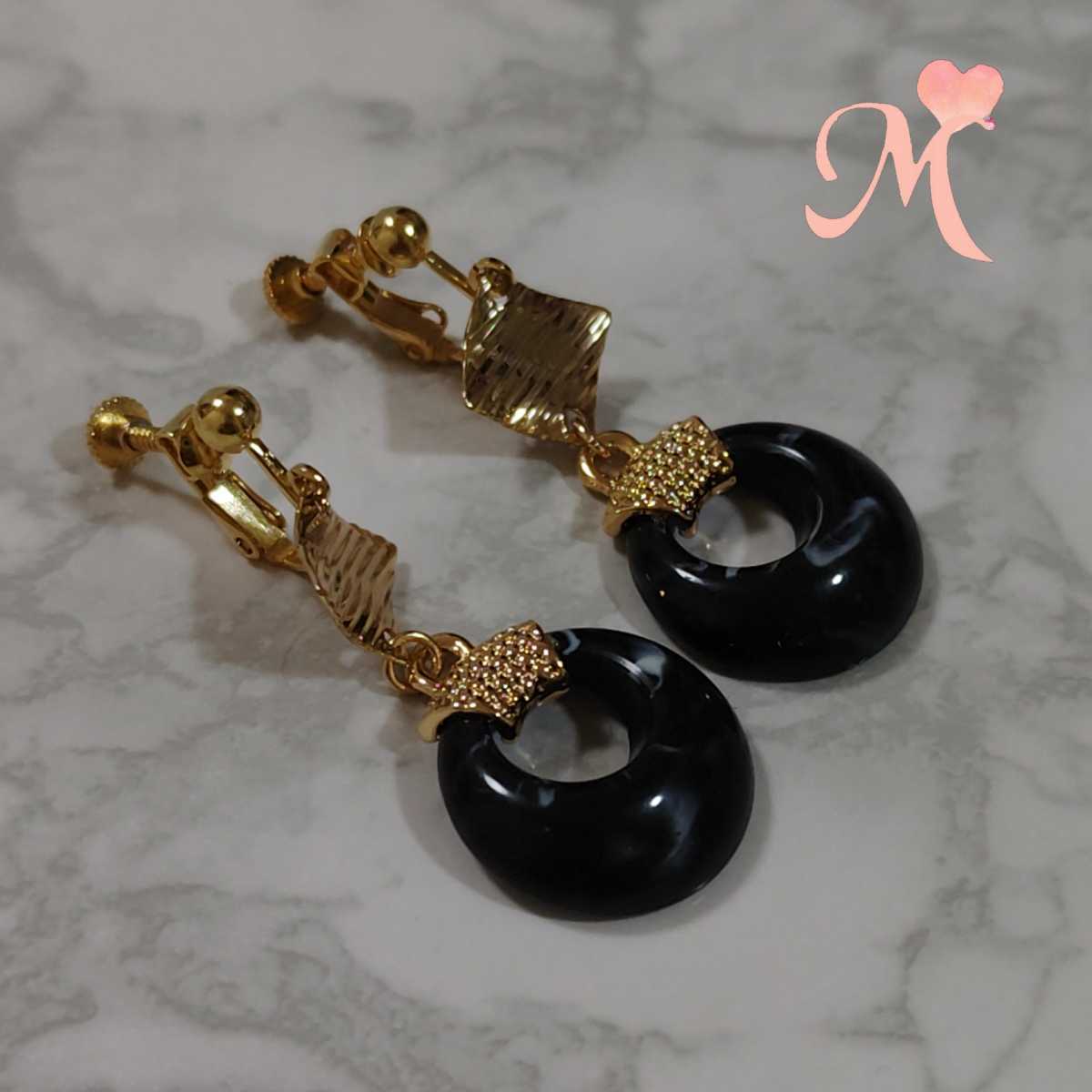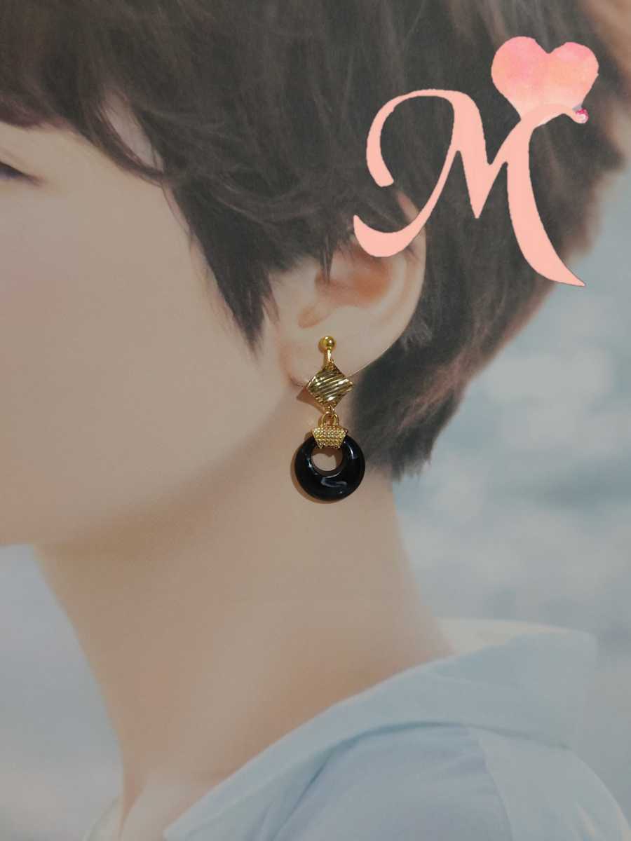 ハンドメイド イヤリング or チタン ピアス or フックピアス アクリルビーズ ブラック アクリル 製 とっても 軽い