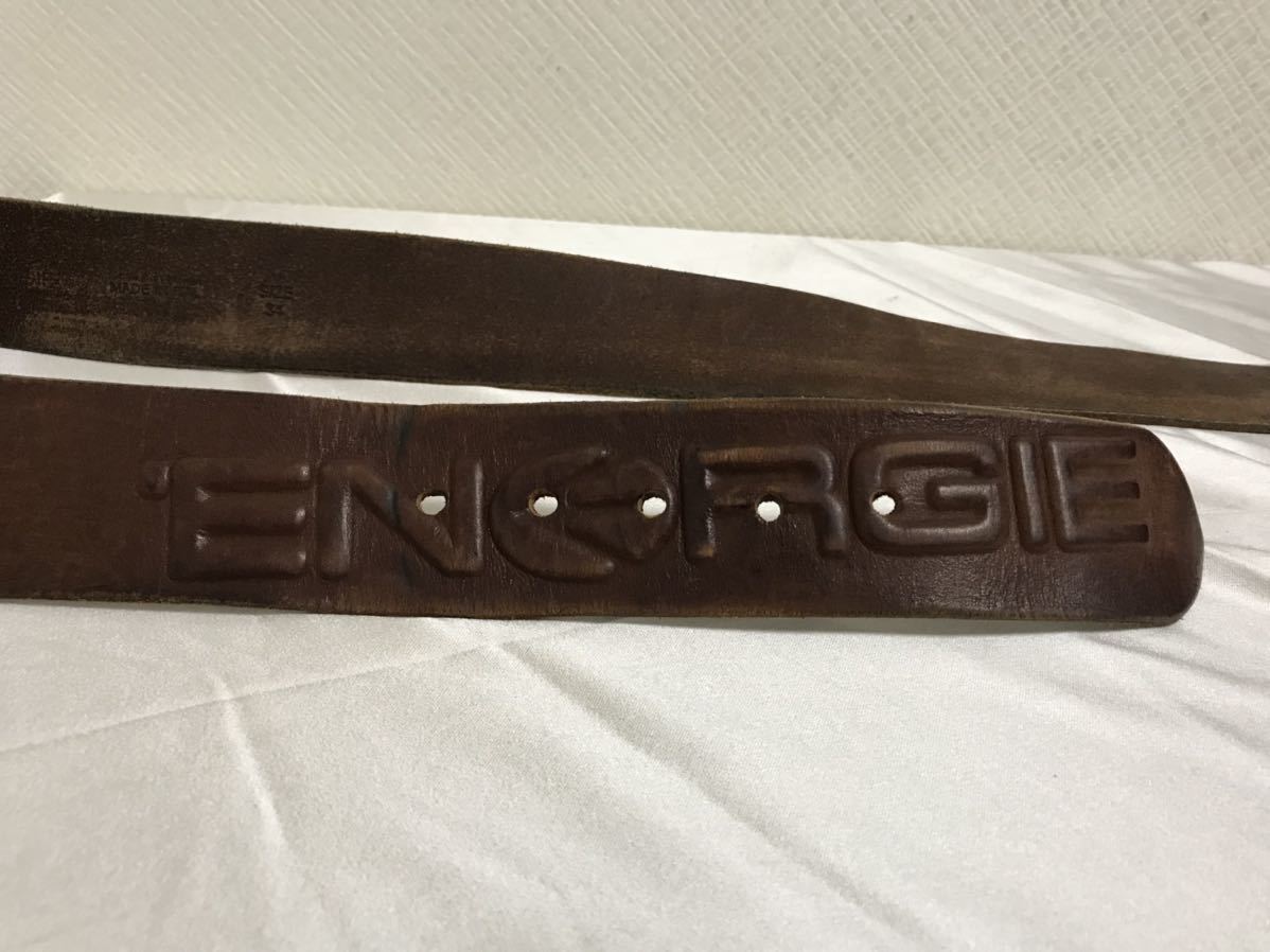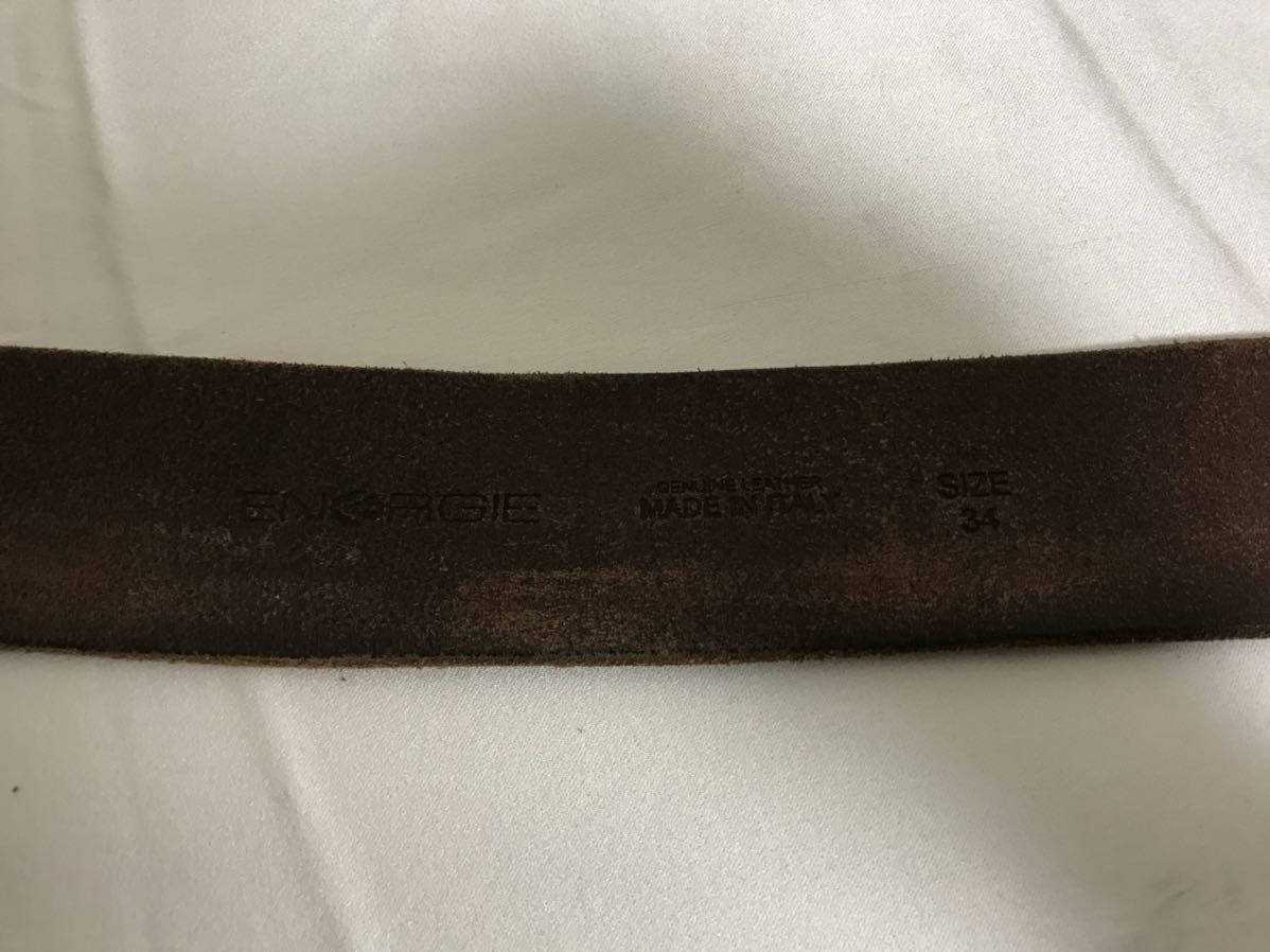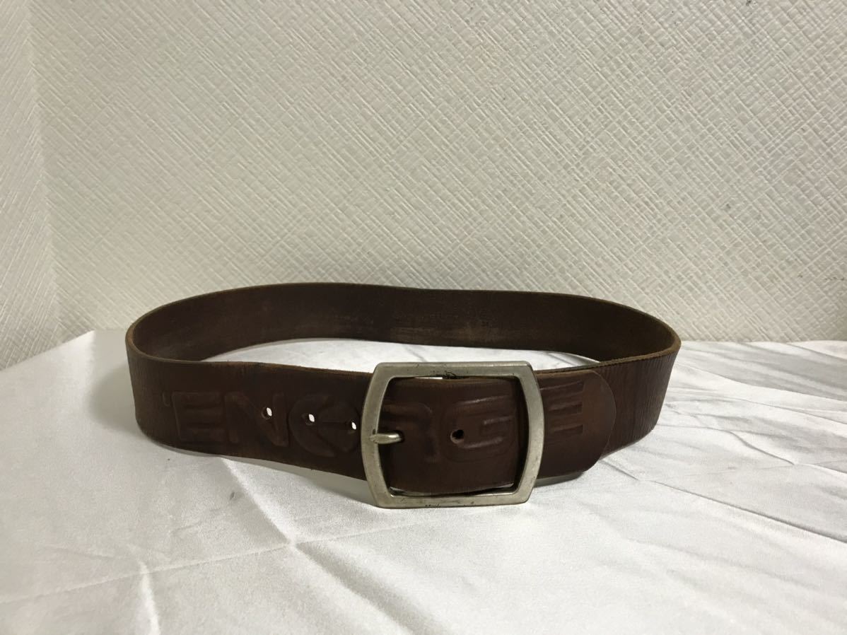 商品名:本物エナジーENERGIE本革レザーロゴベルトメンズレディース茶ブラウンイタリア製アメカジビジネススーツイタリア製34