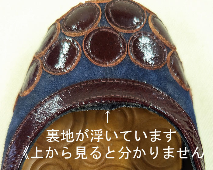 一部裏地が浮いている部分がございますが、まだまだ履いて頂けるお品です。