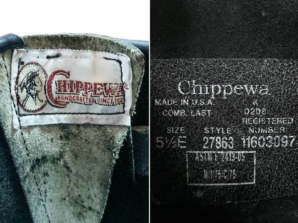CHIPPEWA(チペワ)11”BLACK STL MOTORCYCLE(11インチブラックスチールモーターサイクル) スチールトゥエンジニアブーツ「#27863」2008年製、MADE IN USA(アメリカ製)です。