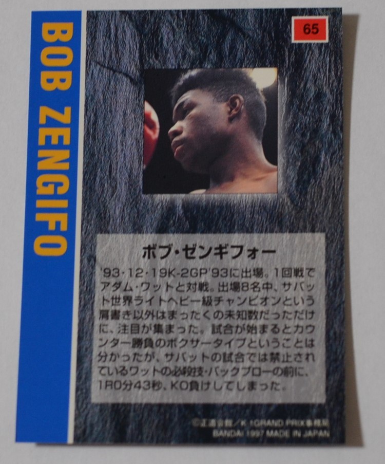 K-1●BOB ZENGIFO ボブ・ゼンギフォー●格闘技 トレーディングカード 6,5㎝×9㎝ 美品