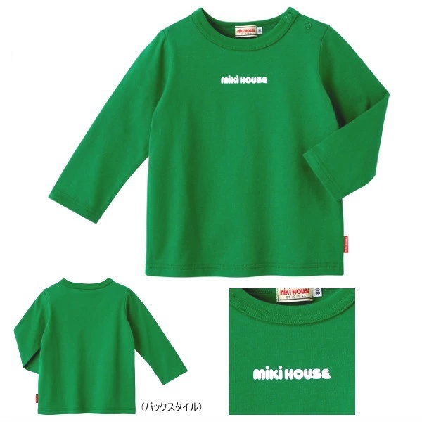 即決です!【ミキハウス】新品未使用130cm 125cm~135cm mikihouseロゴプリント シンプル長袖Tシャツ 子供服 キッズ 男の子 カラー:グリーン