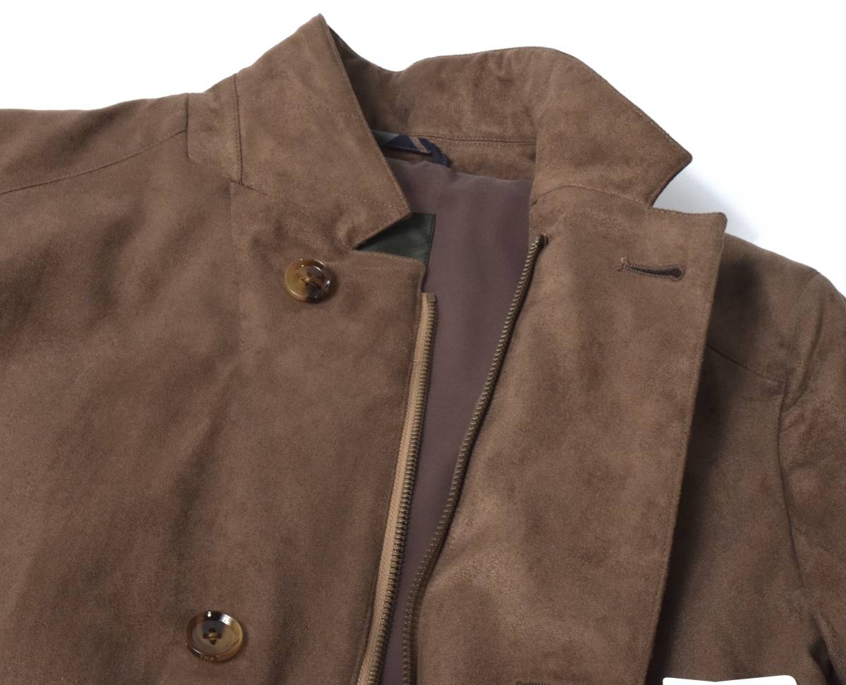 スウェードタッチのソフトな生地を使用した中綿入りのジャケット。 ストレッチ性を持たせたソフトな風合いの素材をセレクトし、軽量感を出すために軽く柔らかな中綿を採用。カジュアルながらも品格のあるフィールドジャケットです。 定価は税込みで53900円。 中国製 | ||||||||||||||||