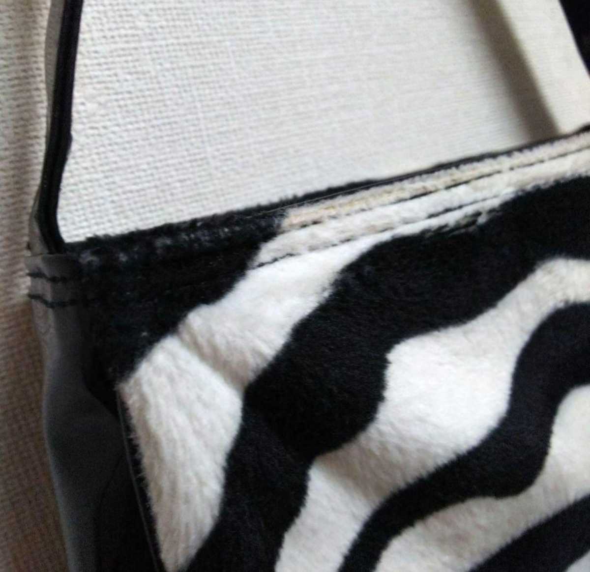 ゼブラ柄部分は毛布のような素材、それ以外はエナメル素材です。