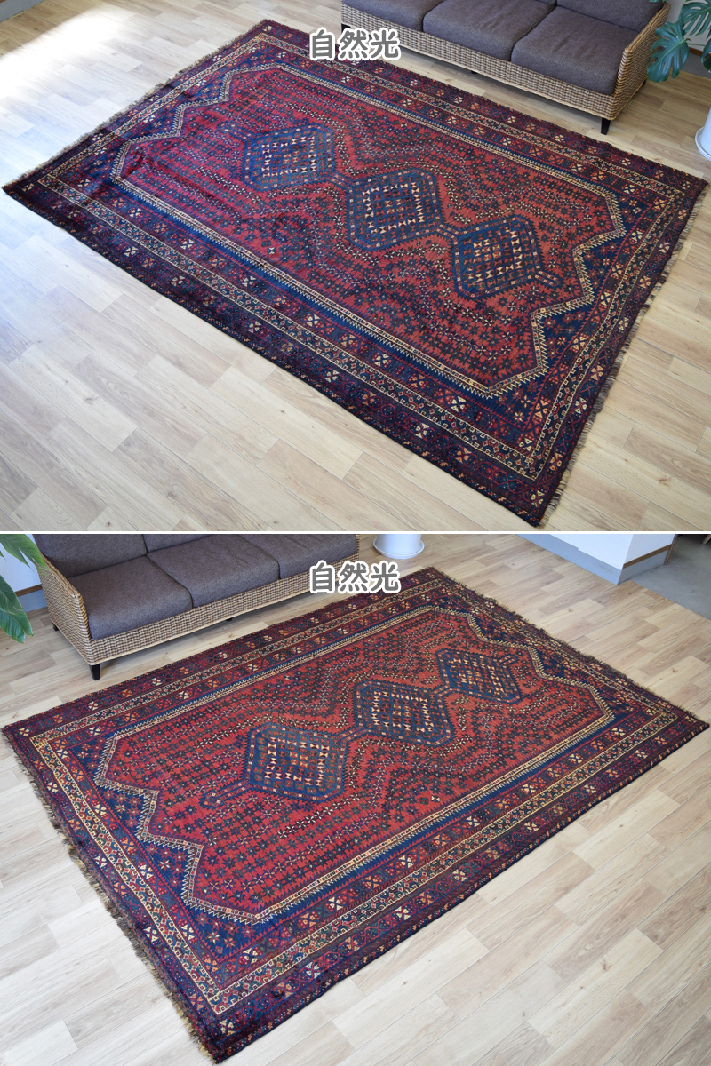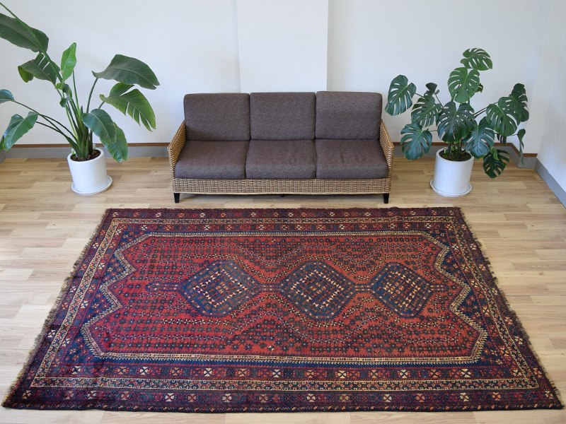 良品 ペルシャ 部族絨毯 シラーズ No.AD375 - 287 x 200 cm 縦3m 横2m 6m2 ~6帖 ウール 手織り ラグ カーペット 赤