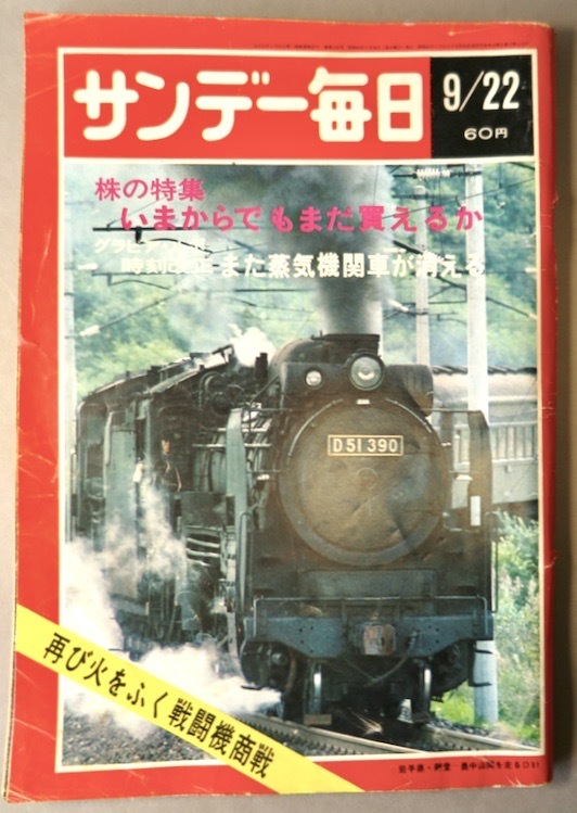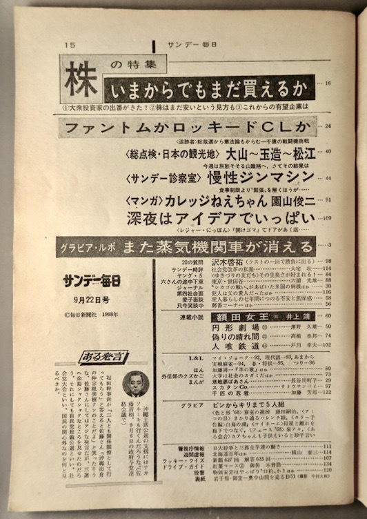 サンデー毎日 第47年第40号 通巻25917号(昭和43年9月22日号/また蒸気機関車が消える他/JUNK)