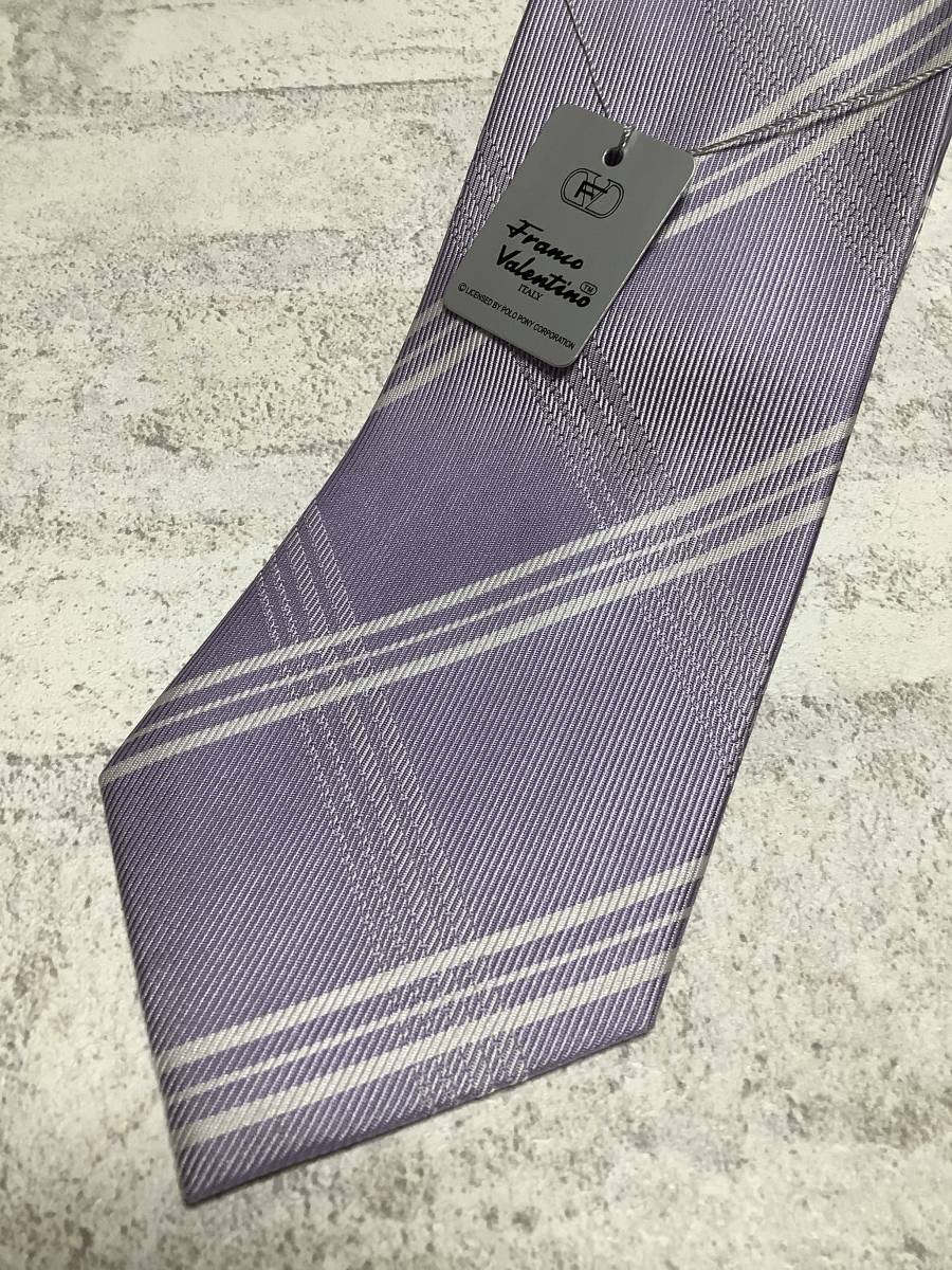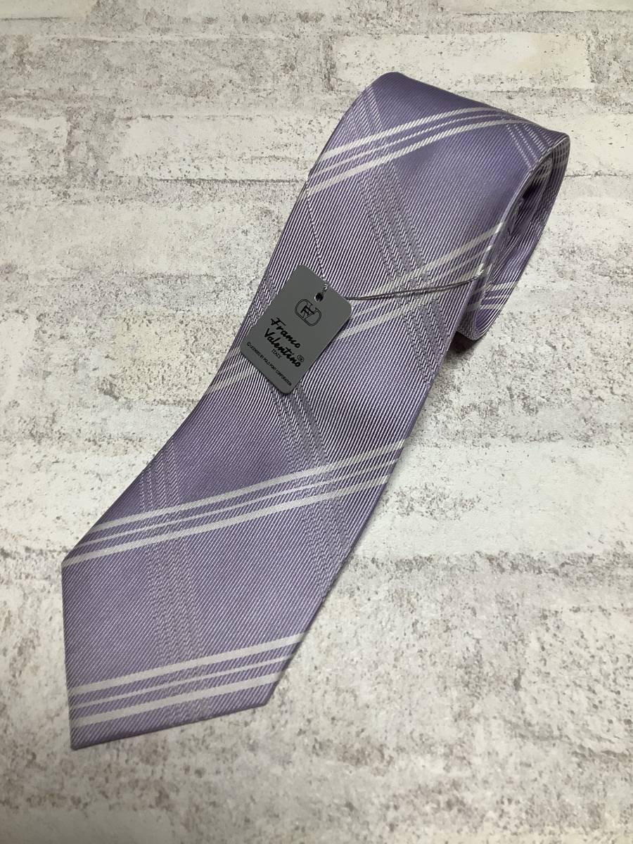 新品フランコヴァレンチノ シルク100%ネクタイ お洒落なパープルチェック お買い得サービス