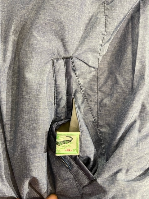 ライトグレーの面は左胸にクロコダイルのマーク、ブルーの面は左ポケットにタグのみでシンプルになっております。