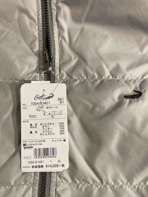 クロコダイルのメンズ ダウンベスト2Lサイズ新品未使用品です。