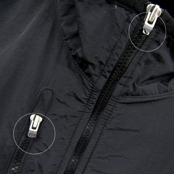 ・開閉に問題はないですが、ジップの引手の部分が4か所とも欠損しており、フロント両袖下部分・中央付近に汚れと、