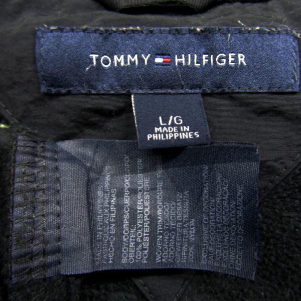 サイズ L/G トミーヒルフィガー TOMMY HILFIGER フリース ジャケット フルジップ ブラック 切り替えし 古着 2N2698