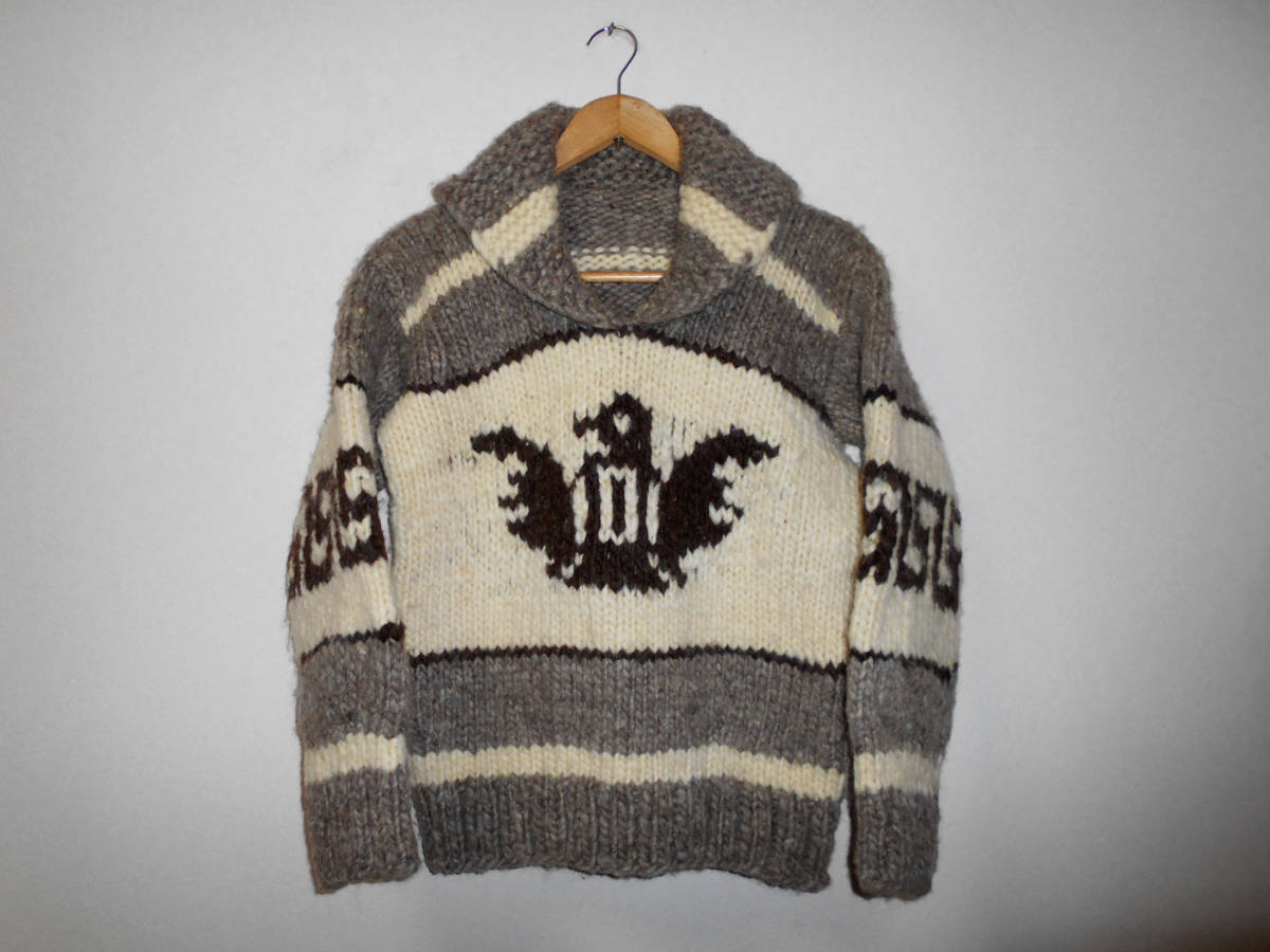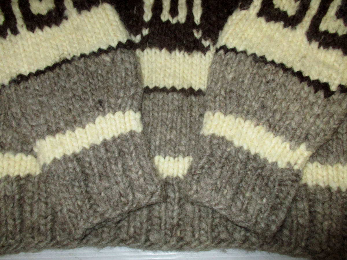 ウールニット カウチン セーター ハンドニットです。タグは取れておりますが素材はWOOL 100です。カナダ製?だと思いますがはっきりわかりません。当方 他にカナダ製のカウチンを多数出品しておりますが同じ質感ですので良いお品です。