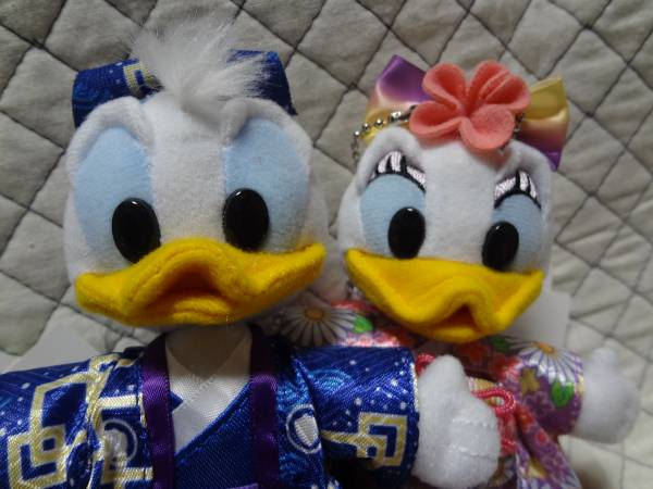 ・ディズニーランドのお正月2014で発売されたドナルド・デイジーのヌイグルミバッジです。