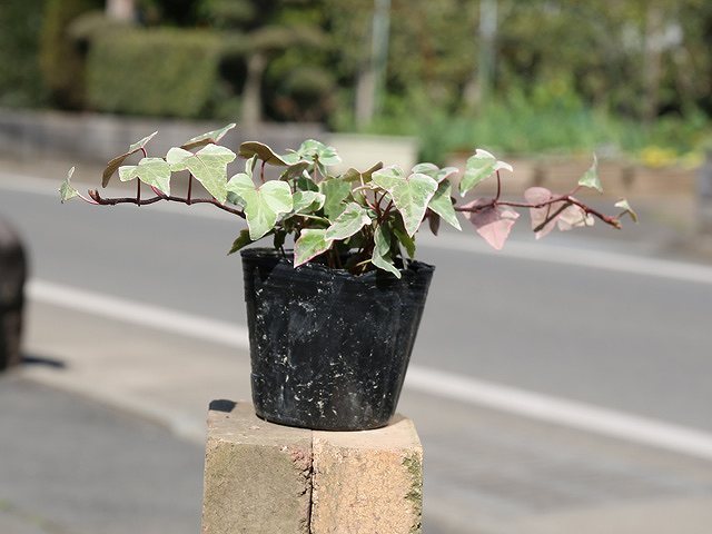 ヘデラはつる性の常緑品種です。吸着や匍匐で成長します。発色がよく、非常に人気がある品種寒さに強くマイナス5℃以上あれば越冬ができます。品種によって平面向き、登はん向き、下垂向きがあります。鉢植えの他にも庭植えにしてフェンスにからませたり、寄せ植えの材料にもよく使われる品種です。