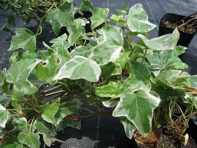 グレーシャーは白斑入りの代表品種です。グランドカバーによく利用しますが、登はん性も高いです。耐寒性に優れます。