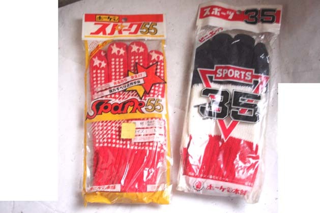 70s、80sの昭和レトロな、デット未使用、新品未開封の新品未使用のままの、滑り止め付きの手袋、2袋一式です。