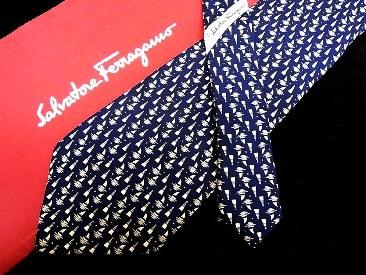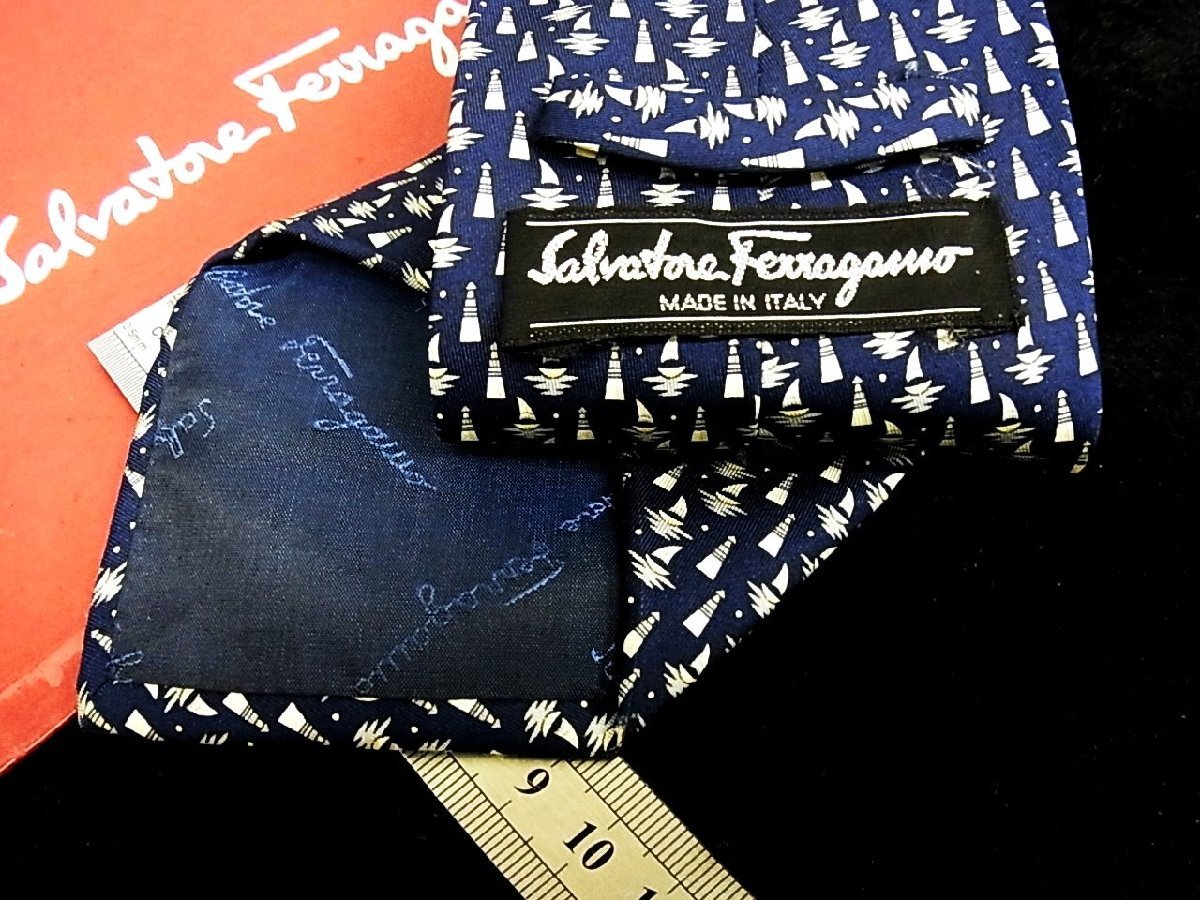 ♪今週の特売980円~♪0805W♪状態並品【Ferragamo】フェラガモ【灯台 船 柄】ネクタイ♪