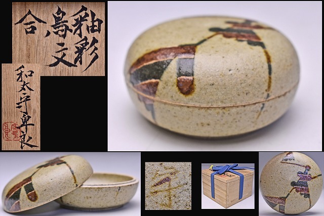 和太守卑良 ★ 釉彩 鳥文 香合 ★ 共箱 ★ 笠間焼 でご活躍 ★ 独特な作風 が人気 ★ 海外でも高い評価 ★ 香道具 ★