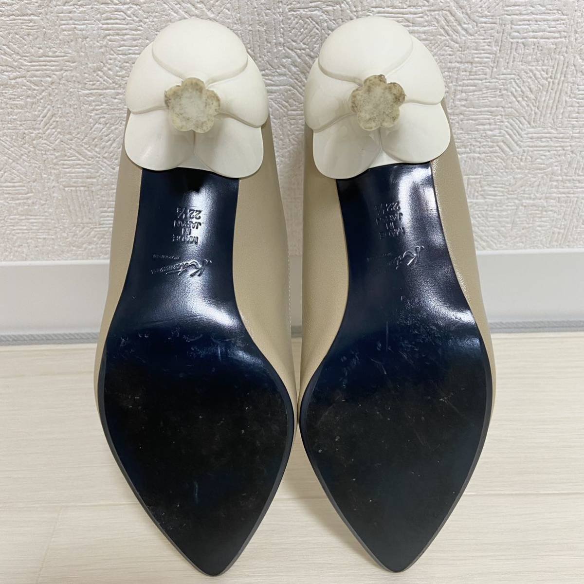 贅沢にも本革を採用。エレガントなフラワーヒールデザイン。