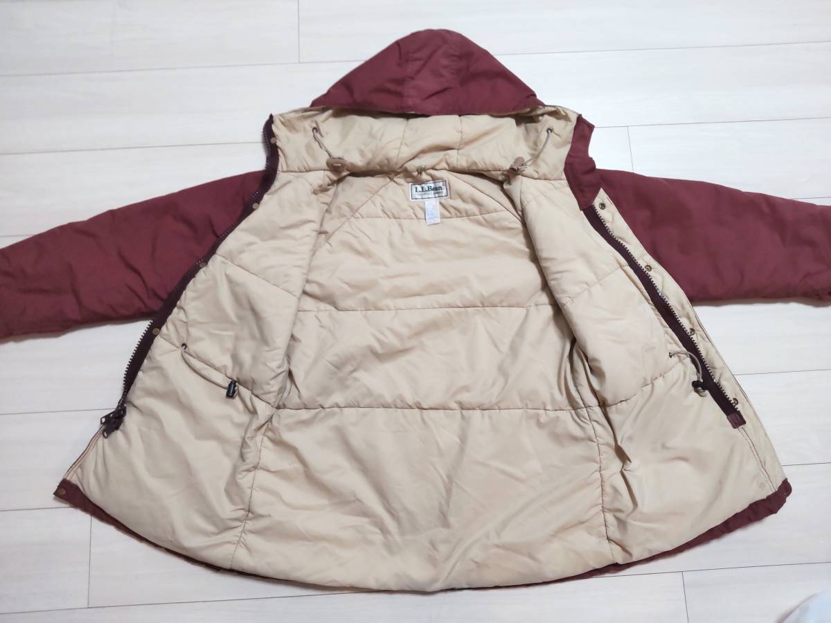 アメリカ、LLBEAN社のマウンテンパーカーです おなじみのアウトドアブランドです ■かなり昔の旧モデルになります LL BEANが現在よりアウトドア色が強かった頃のものです ■サイズは女性サイズのMになります 素人採寸ですが 身幅(脇の下で)58cm 身丈73cmありました かなり大きめの作りですので男性カテゴリーにさせて頂きました ■アメリカ製です ■表地はナイロンです ■色はあずき色系のカラーです ■中綿が入っております(Olefin65% ポリエステル35%) 保温性があります ■正面はジッパーとボタンの併用タイプです ■フードとウエストはドローコードで袖口はベルクロで締めることが出来ます ■ポケットは正面左右それぞれ上下に付いております 下のポケットは横からもアクセスできます ■ユーズドになりますので使用感は多少あります 内側には裾付近に1cmほどの表面のダメージがありますのでよろしくお願いします(写真7枚目をご参照下さい)■LL BEANのファンの方いかがでしょうか 是非よろしくお願い致します