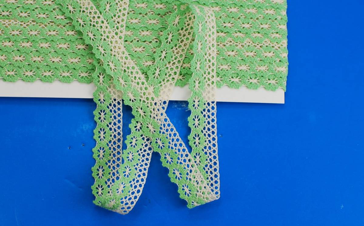 10mまき 綿レース 16mm巾 グリンx生成【手芸・縫製】