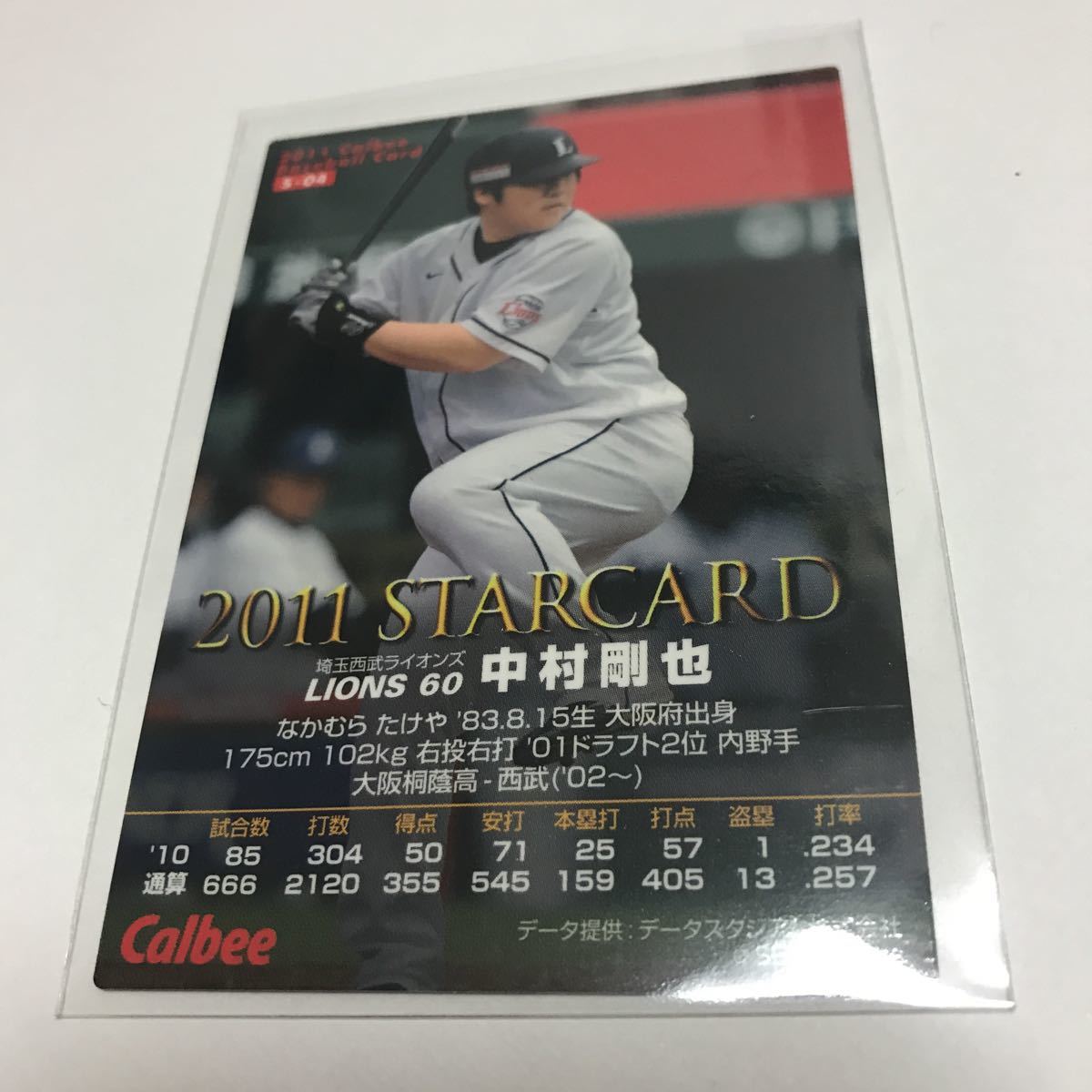 カルビー プロ野球チップス 西武ライオンズ 中村剛也 金箔サインカード 2011年