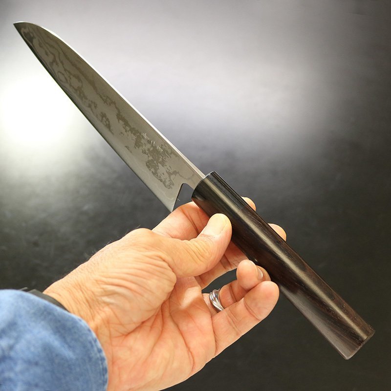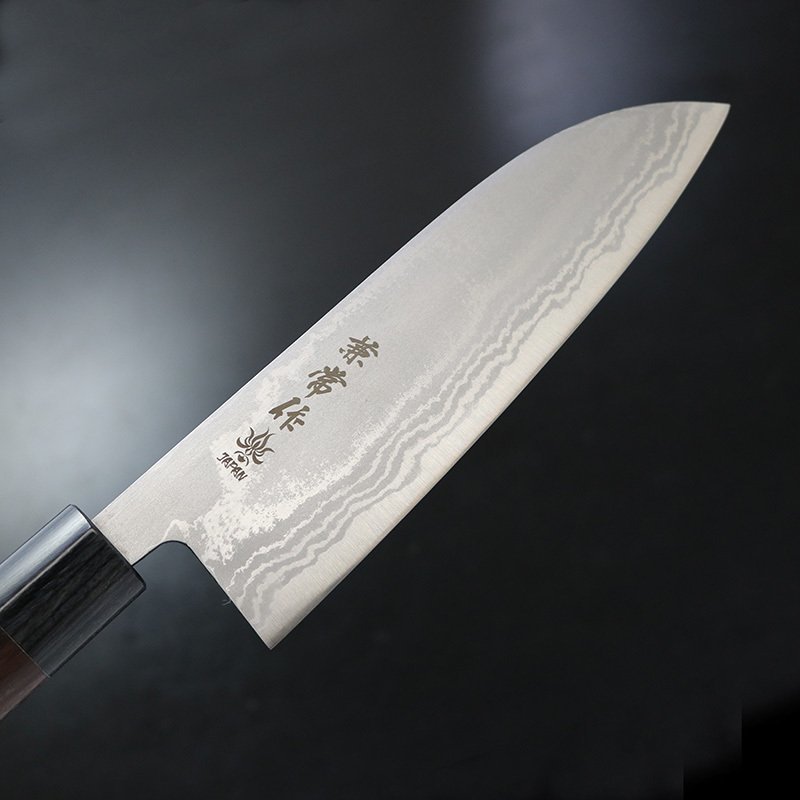 刀身全体に優雅に浮かび上がる神秘なダマスカスの紋様と、高級感漂う紫檀柄。究極の切れ味を誇る青紙2号を熟練職人により鍛え上げられた逸品です。