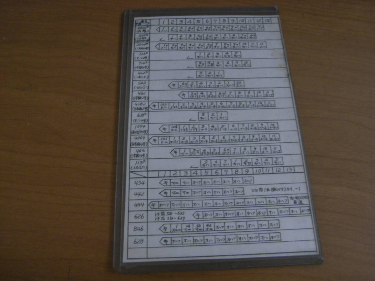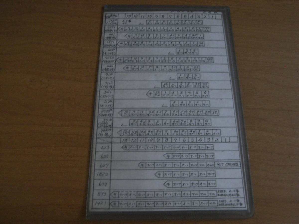 弘前駅(昭和53年10月2日改正)のプラスチックケース入りの編成表です。弘前駅発着の優等列車全列車と普通列車13本の編成表です。駅員の方の携行品かと推測しております(推測のため、相違の際はご容赦ください)。配布の「弘前列車時刻表 昭和53年10月2日改正」もお付けします。編成表と合わせてお楽しみください。