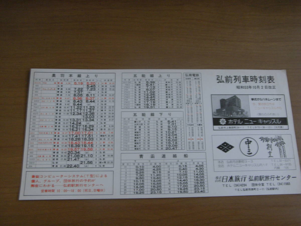 国鉄 弘前駅 昭和53年10月2日改正 列車編成表 駅員の方携行品?