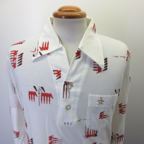 70s 昭和レトロ 柄シャツ 長袖 M ゴルフ グランドスラム メンズ JAPAN古着 b855