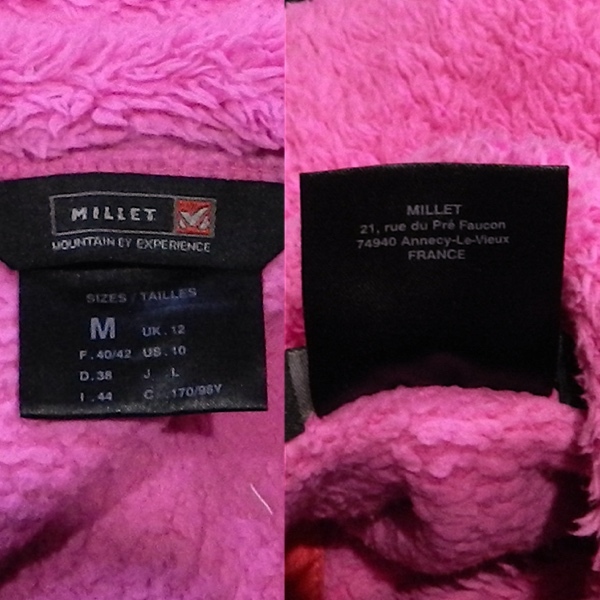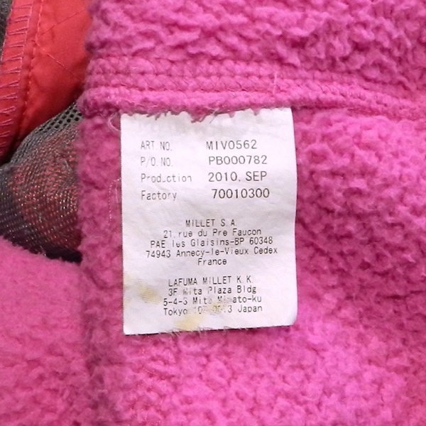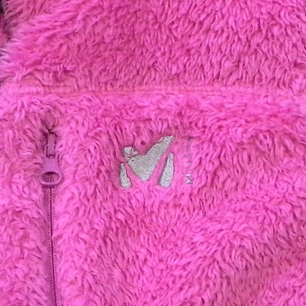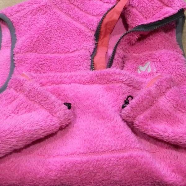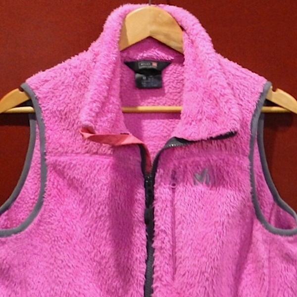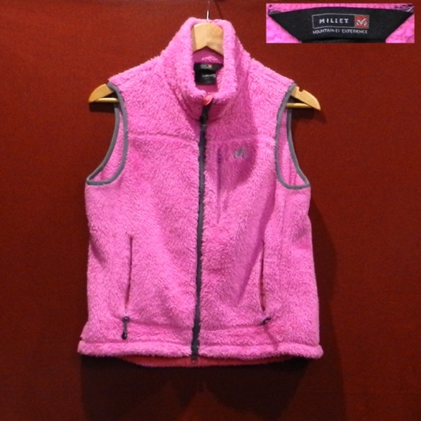 MILLET ミレー ロゴ ZIP 毛長 フリース ベスト ピンク グレー レディース M サイズ