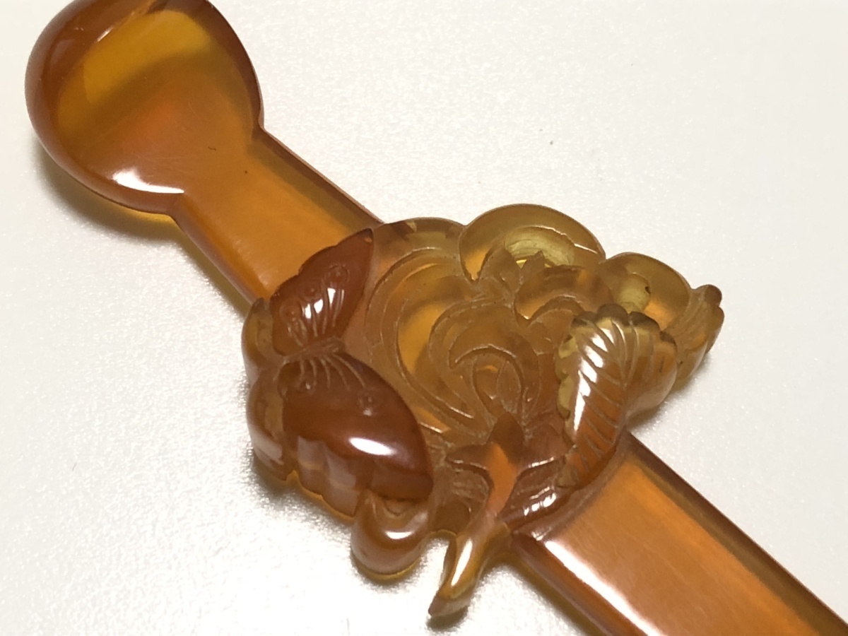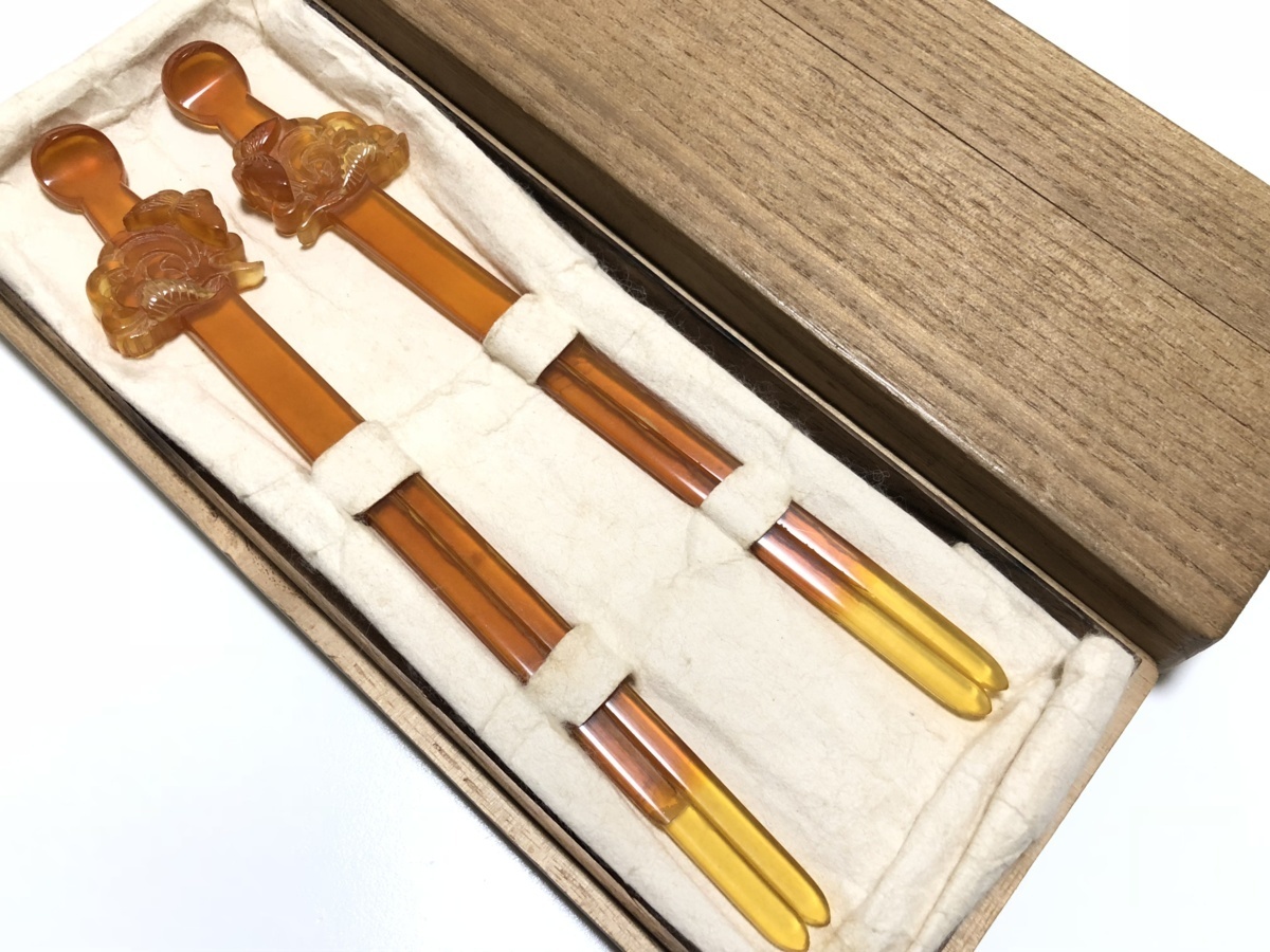 アンティーク 本鼈甲 白甲 立体菊花蝶細工 簪 2点 共箱付属