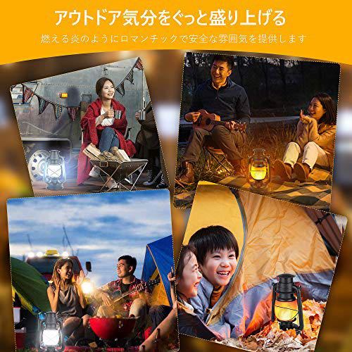 【ゆられる炎の雰囲気】当社のLEDランタンでは炎の効果と常用点灯2つのモードを快適な照明を自由に調節できます。炎の効果モードは燃える炎の効果を参考に、点灯する時には燃える炎のようにロマンチックで安全な雰囲気を提供します。常時点灯モードは明るい感じを提供します。