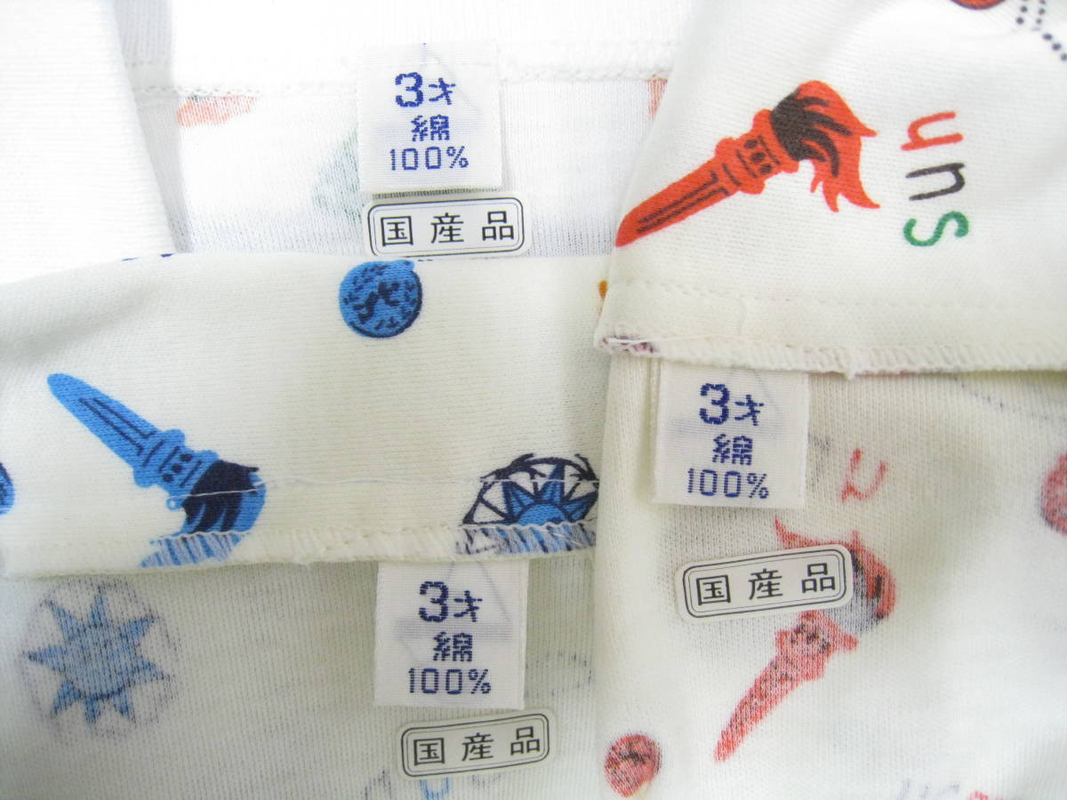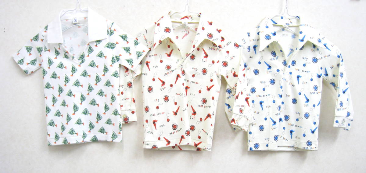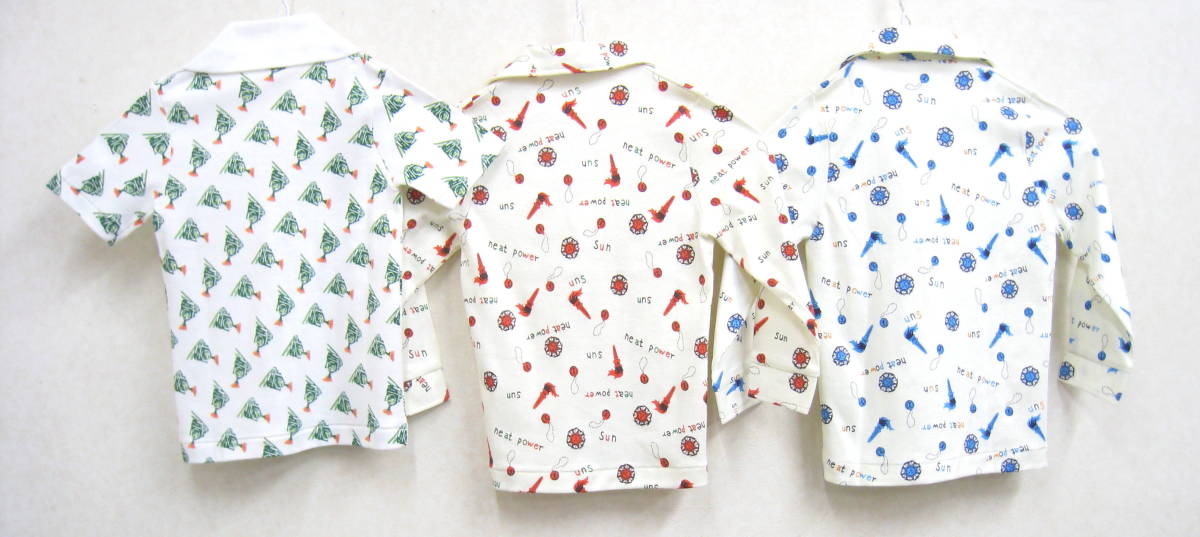 | ★未使用品◆昭和レトロ Dead Stock デッドストック コットン100% プリント スキッパー ポロシャツ 3着セット キッズ 男の子 3才用 国産品★ | ||||