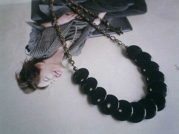 アート・クチュール・・シリーズです♪オニキス・デッサン・・シックなオニキスのネックレスです♪15ミリ位のフラットコインのオニキスにデザインチェーンを合わせました♪長さは全長62センチ位で調節自由です♪♪お揃いのブレスレットも出品しています♪♪シンプルで長く着けていただけるデザインを考えて作りました♪ハンドメイドをご理解頂いてノークレーム、ノーリターンでお願いします