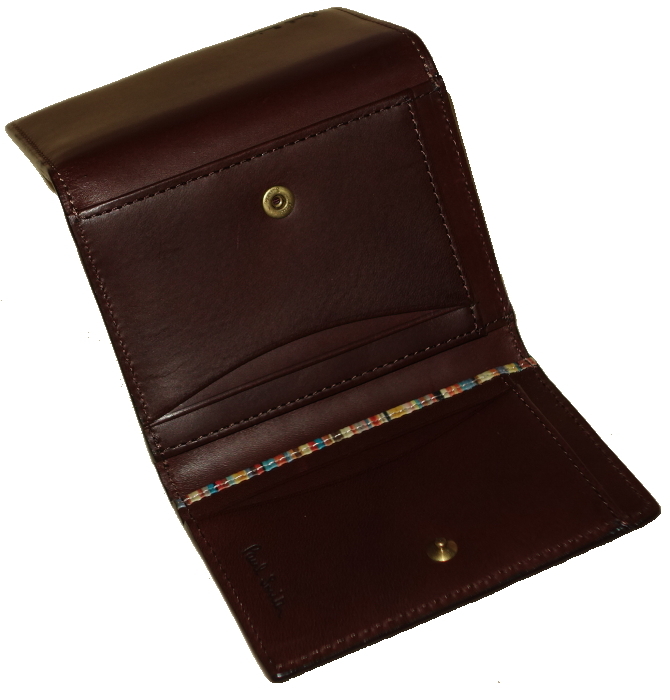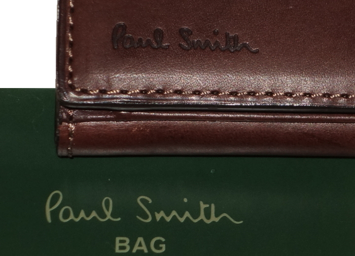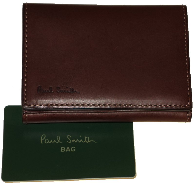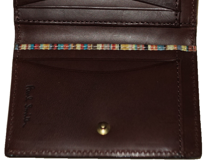 ポールスミス Paul Smith★カードケース 三つ折り★オールドレザーxインサイドマルチライン★ダークブラウン・濃茶