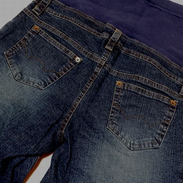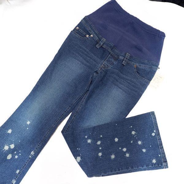 ウェストリブのマタニティ綿ストレッチジーンズです。 | ||