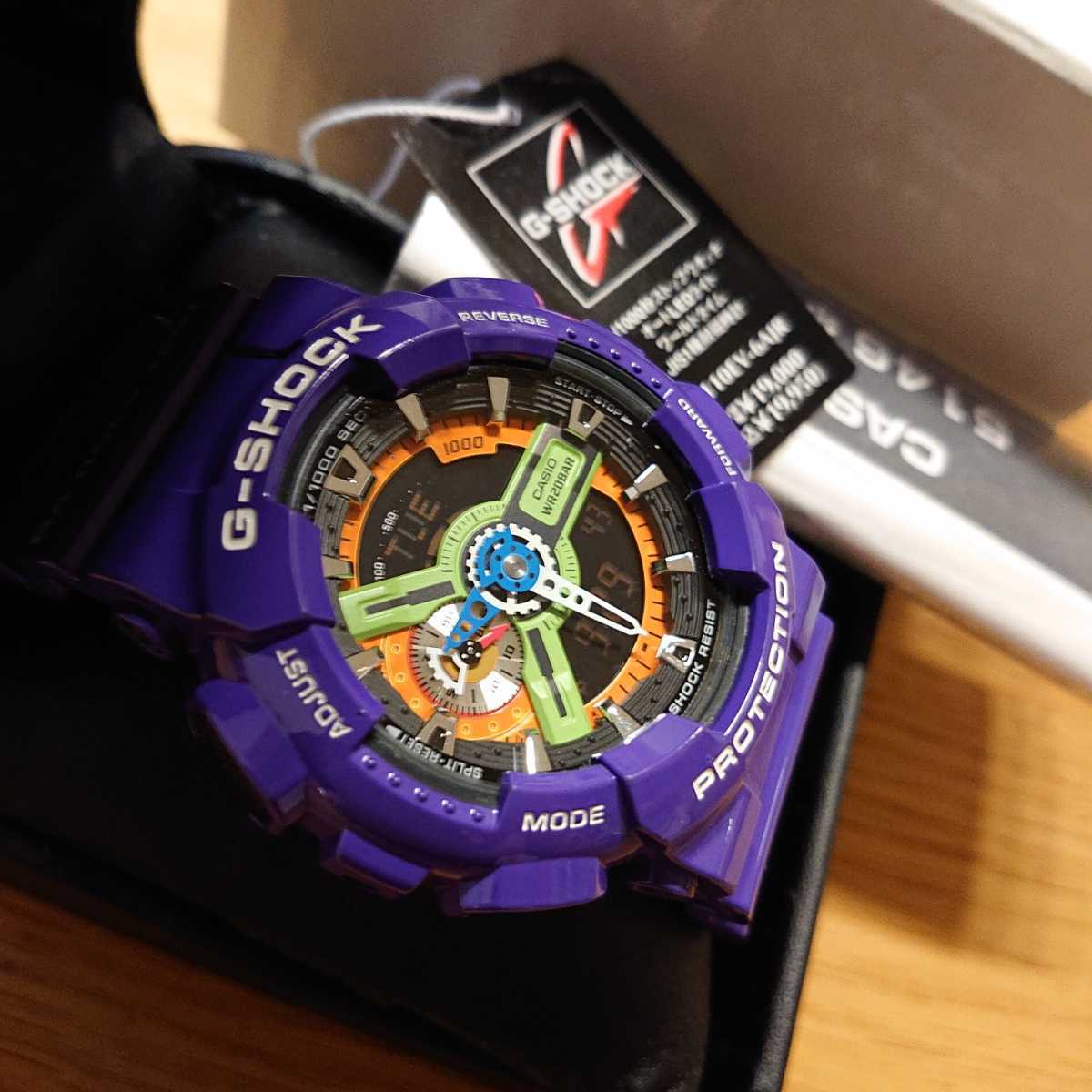 CASIO Gショック エヴァンゲリオンコラボモデル GA-110EV-6AJR 新品、未使用、完品 電池交換済み!安心個体 ガラス傷なし、裏ブタ保護シール付 付属品、箱、取説付、プライスタグ付
