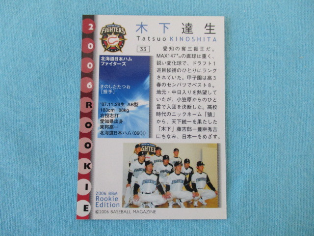 ★BBM 2006★ルーキーエディション〔33 木下達生 北海道日本ハムファイターズ〕
