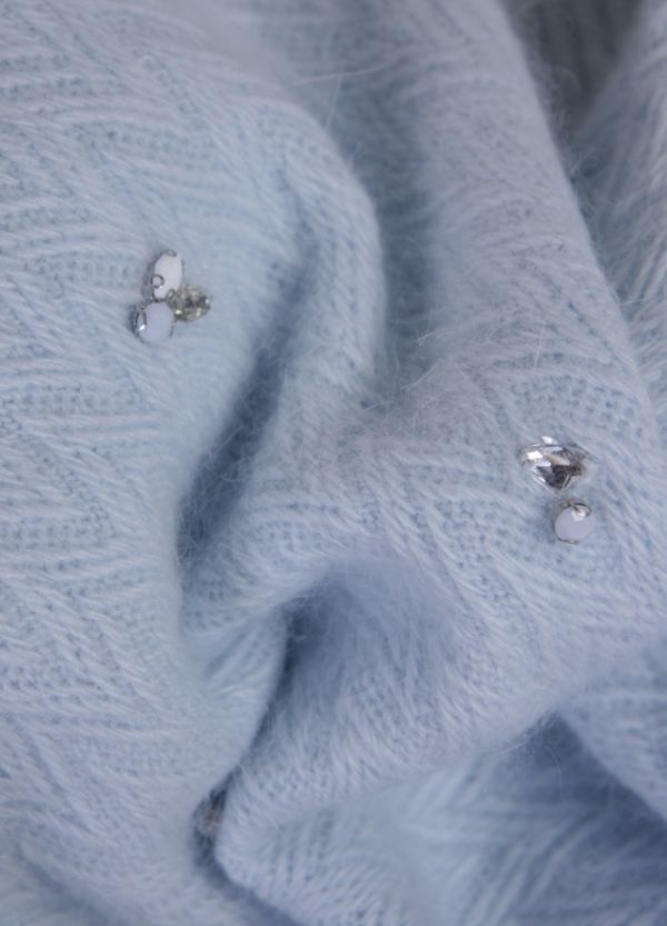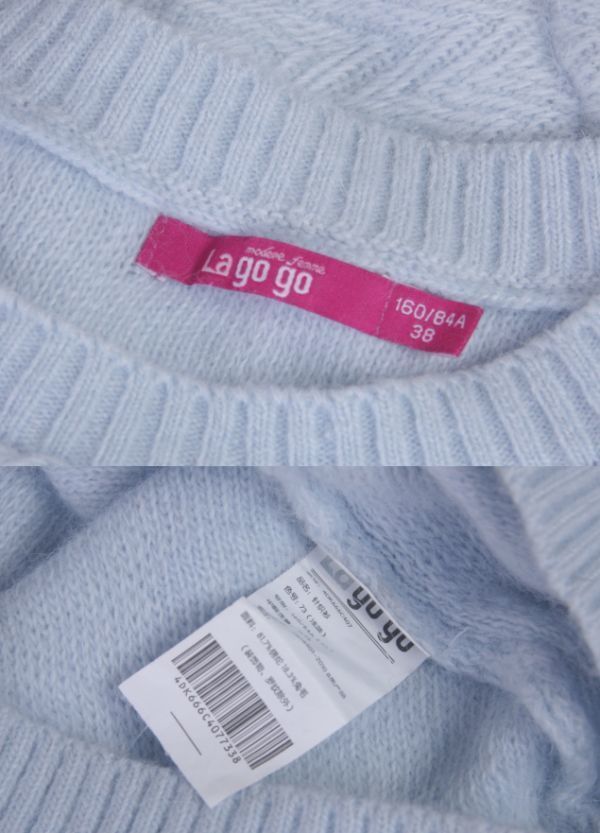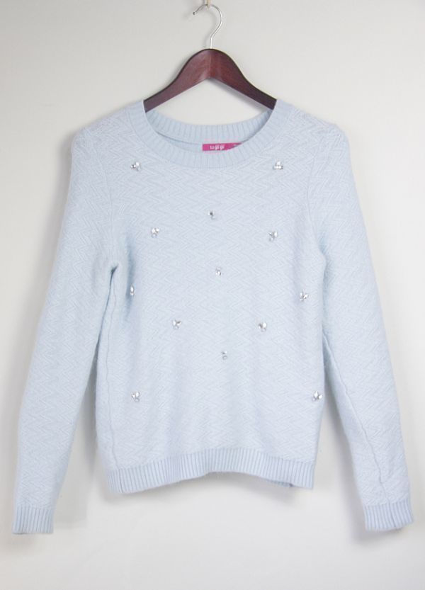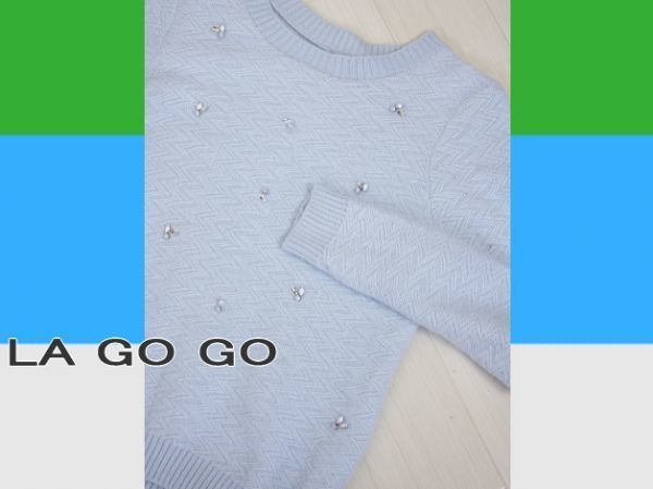 B414☆上海 レディースウェアブランド La・Go・Go ラ・ゴーゴー 定価2万 上質 ふわんわり 淡色ニット ビジューセーター トップス 水色