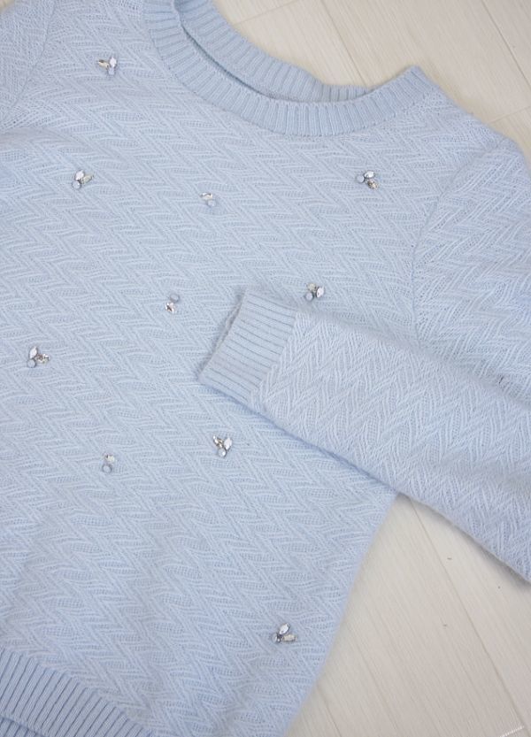 定価2万上質ふわんわり淡色ニット上海 ビジューセーター